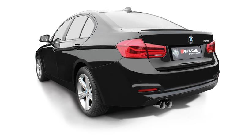 Info: Axle-Back-Anlage: (DR K7 für F30/F31 320i) + 0861120504! Für Standardheckschürze und M-Sportpaket! Bei Verwendung der Sportschalldämpfer links auf BMW F30/F31 320i(x) muss die Heckschürze laut beiliegender Schnittschablone nachgeschnitten werden! Die Serienanlage muss beschnitten werden!
