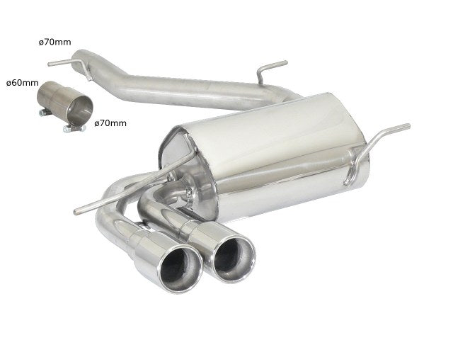 Sportschalldämpfer mit 2 Endrohren 80mm rund versetzt, inkl. (EG-) GENEHMIGUNG!