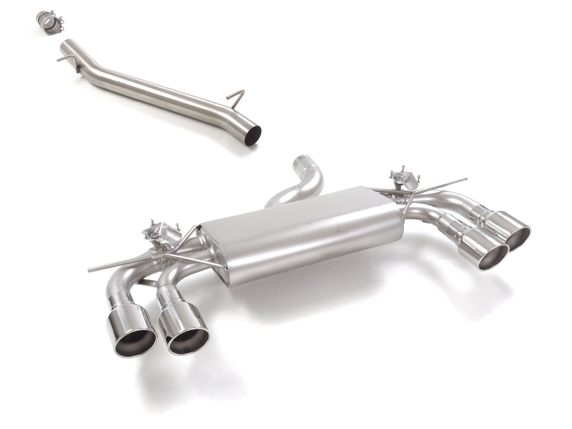 Reduzierstück zur Montage auf Serien-Mittelschalldämpfer ist im Lieferumfang enthalten.