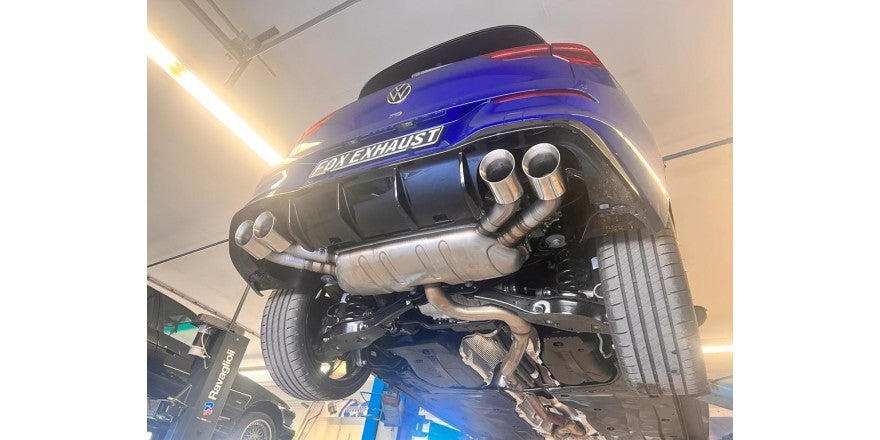 Info: Die originalen Endrohre werden zwischen Endrohr und Endschalldämpfer getrennt. FOX Endrohre aufstecken, justieren, Schellen festziehen.